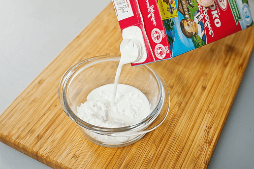 Dissolve the starch in half a glass of milk. To avoid lumps, it's better to pour the milk in a thin stream into the bowl with starch, and then gently stir everything with a teaspoon.