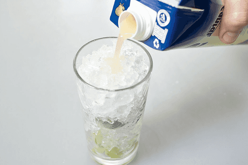 Fill the glass to the rim with ice. Carefully pour in the pear juice. You can use fresh juice or packaged; in the first case, you may need to sweeten the juice a bit more than the ready-made one.