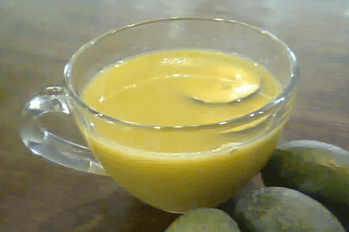 Juice the oranges to get about 150 ml of fresh juice. Pour the juice into a blender with feijoa and blend.