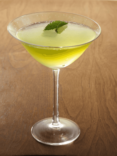 Strain into a chilled glass. Add a mint leaf.