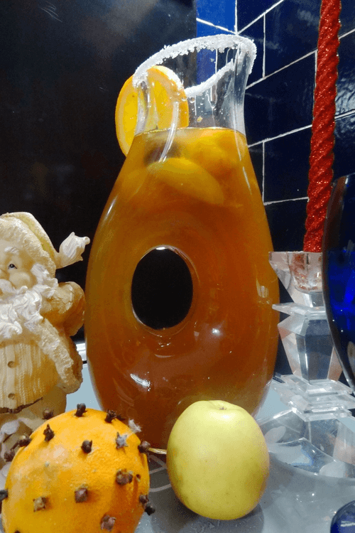 While the dried fruits are boiling, slice the apples and cut a couple of oranges into rounds.