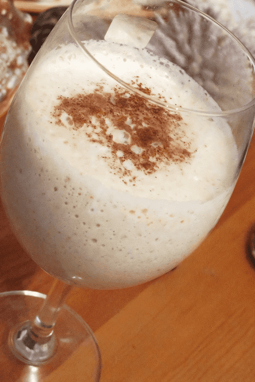 Pour the remaining milk and whip it well again. Pour into glasses and sprinkle with a pinch of ground cinnamon on top.