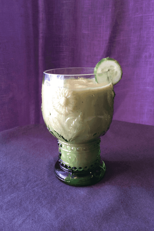 Serve decorated with a slice of cucumber.