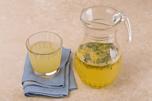 Strain the lemonade through a sieve and serve in glasses.