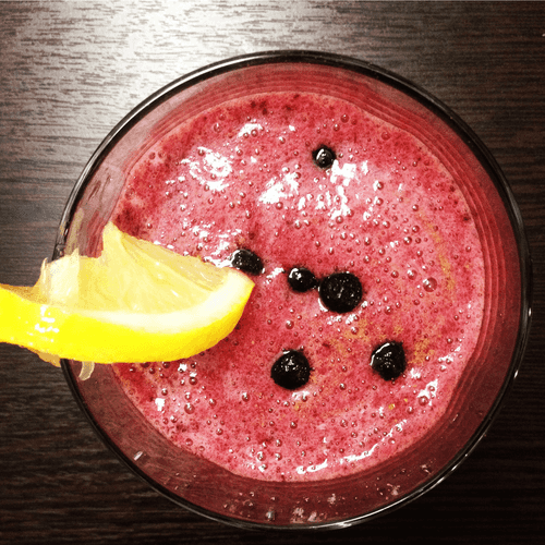 Load all ingredients into the blender and mix for 1-2 minutes. Garnish the finished smoothie with blueberries and a slice of lemon!