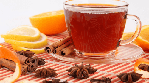 In the teapot, we add: 1 stick of cinnamon (or 1.5 teaspoons of powdered cinnamon), 1 tablespoon of honey, chopped ginger, and lemon.