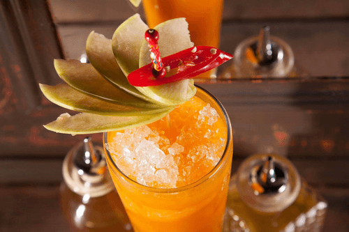 The cocktail 'Cold Summer of 1986' is a reminder of warm summer days with notes of sea buckthorn, apple liqueur, and a hint of spicy sharpness. Its name refers to historical events, reflecting nostalgia and the taste of freedom. The bright orange hue and rich, layered flavor make it not just a drink but a true gastronomic experience. Sea buckthorn adds freshness and fruity tartness softened by falernum and sugar syrup, while pepper vodka adds spicy accents. Ice cubes maintain the perfect texture, and a sprig of thyme adds an aromatic touch. This cocktail is perfect for leisurely summer evenings and atmospheric gatherings, highlighting the uniqueness of Russian bar culture.