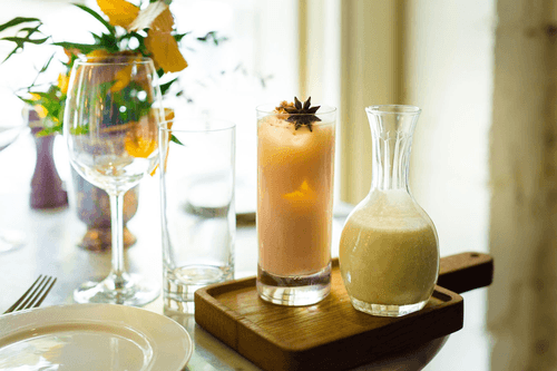 The cocktail 'Rum and Raisin' is an exquisite blend of the strength of rum, the sweetness of vanilla liqueur, and honey syrup, complemented by the gentle tartness of kefir. Its origins trace back to European bars where the balance of flavors and original ingredient combinations are valued. The drink is refreshing, light yet deep in taste sensations with nutty and anise notes adding charm. Ideal for cozy evenings, leisurely conversations, and enjoying gastronomic experiments. Garnished with crushed roasted peanuts and a star anise, it looks elegant and appealing, highlighting the sophistication of its flavor. A wonderful choice for those who appreciate unusual cocktails with rich, layered tastes.