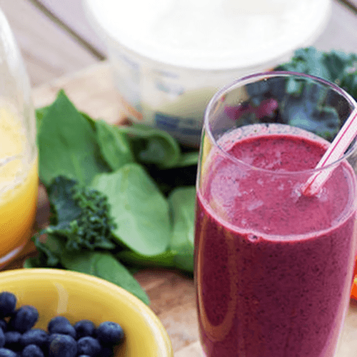 Blend these ingredients: 150 g unsweetened yogurt, 100 g milk, pear without seeds and skin, 1 tbsp lemon juice, half a teaspoon of honey, a piece of peeled ginger the size of an apricot pit, a couple of ice cubes, spinach (to taste), a handful of blackberries.