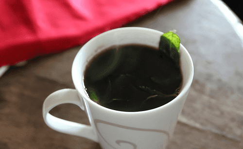 At this time, we place mint leaves in a cup and gently crush them to release their aroma and flavor. We filter the brewed coffee from the Turkish pot and carefully pour it into the cup with mint.
