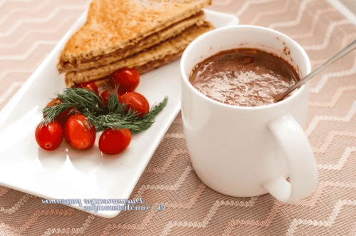 Hot banana chocolate is a cozy, warming drink that combines the rich flavor of cocoa with the gentle sweetness of ripe banana. Its history traces back to European hot chocolate traditions, originally considered a drink for aristocrats. The banana adds softness and natural sweetness to the classic recipe, making it particularly appealing to lovers of delicate, creamy textures. It's an ideal choice for cold evenings or simply cozy moments when you want to treat yourself to something warm and fragrant. The thick consistency and subtle fruity aroma create a harmony of flavors, while the light sweetness allows for enjoyment without added sugar. This drink is perfect for savoring on its own or as an accompaniment to desserts, especially baked goods with nuts and caramel.