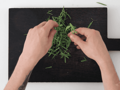 Tear off the leaves of tarragon.