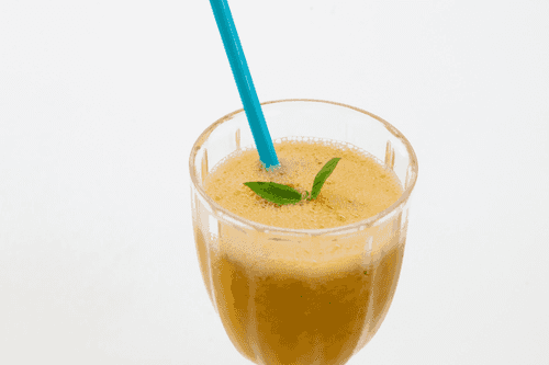Yellow smoothie with apples, basil, and ginger is a refreshing and nutritious drink that combines the sweetness of fruits with the light spiciness of ginger. Its roots trace back to European culinary traditions where fresh, natural ingredients are valued. The bright yellow color comes from carrots, while 'Golden' apples add a soft sweetness. Cucumber refreshes the taste, pear softens the texture, and banana makes the smoothie richer. Basil adds a refined aroma and ice cools it down, making it an ideal option for a hot day. This smoothie is perfect for breakfast, a snack or as a light addition to a main dish. It energizes and offers enjoyment from the freshness of natural ingredients.