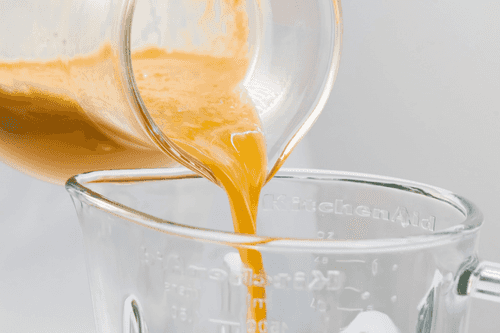 Juice carrots, cucumbers, ginger, apples, and pears. Set aside one quarter of the pear.