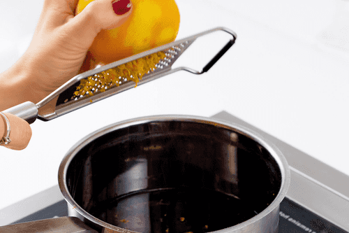 Add the remaining ingredients, only the zest of the orange is needed. Turn off the heat and let it steep for at least thirty minutes. When the drink is ready, heat it up, strain it, and serve.