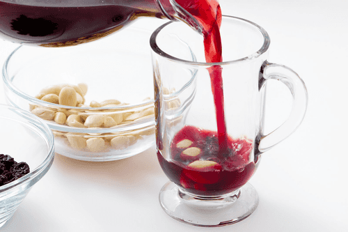 Before pouring into small glass cups, you can first add some almonds and raisins.
