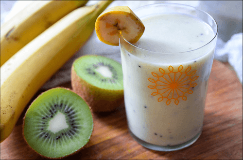 Blend all ingredients until smooth, pour into glasses, and garnish with a slice of banana or kiwi. Your energy drink is ready.