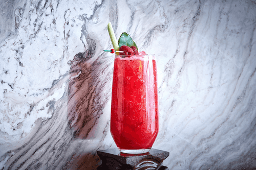 Lychee and raspberry lemonade is an exquisite drink of French cuisine that combines the refined sweetness of lychee with the bright tartness of raspberry. Its delicate, refreshing taste is complemented by a light floral note of elderflower syrup and pleasant citrus freshness from lime. Calpis adds softness and a creamy texture to the drink, making it especially enjoyable for summer relaxation. Soda water adds playful bubbles, enlivening the flavor and creating lightness. Perfect for hot days, elegant parties, or simply enjoying the moment. This lemonade not only quenches thirst but also offers gourmet pleasure by blending exotic and traditional French motifs in one glass.