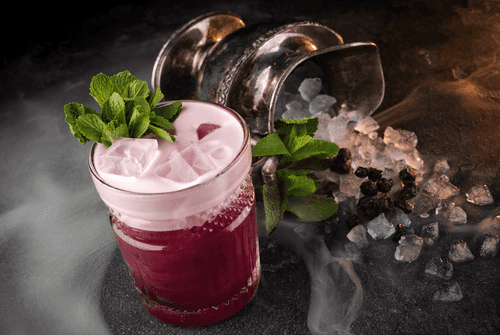 The Elixir of Four Thieves is a mysterious drink rooted in medieval France. According to legend, it was created by four thieves during the plague epidemic to protect themselves from illness. The combination of blueberry shrub, nectars, and liqueurs with rum gives the drink a rich berry flavor with warm spicy notes. Mint leaves add freshness while lemon juice balances the sweetness. This elixir is perfect as an evening cocktail, offering a refined sweet-and-sour flavor profile and a light bitterness. Served chilled and garnished with a sprig of mint, it captivates with its aroma and deep ruby color. It can be enjoyed in a cozy atmosphere, immersing oneself in the mystery of its history while savoring the complexity of its layered taste.