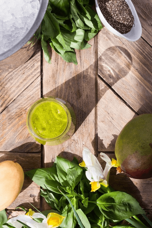 Chia seeds with mango and spinach is a refreshing and nutritious smoothie inspired by European culinary trends. Its history begins in modern concepts of healthy eating that focus on natural ingredients and flavor balance. Mango adds sweetness and exotic richness to the drink, spinach contributes a light herbal note, and basil brings freshness and spiciness. Almond milk makes the texture soft and velvety, while chia seeds add a light density and valuable nutrients. Ice cools the mixture, turning it into the perfect drink for a summer day. This smoothie can be consumed as a nutritious breakfast, refreshing snack, or healthy dessert after a workout. The ease of preparation makes it accessible to anyone striving for a healthy lifestyle.