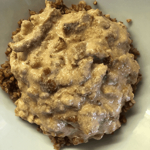 Veal Beef Stroganoff with Mushrooms in a Multicooker