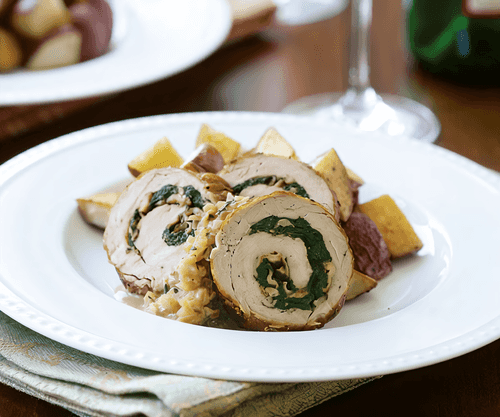 Herb-stuffed pork roll is a vibrant representative of Italian cuisine, embodying its rich aromas and love for natural ingredients. This recipe is rooted in Tuscan gastronomy traditions, where meat is prepared with great attention to spices and fresh herbs. Juicy pork infused with the aroma of tarragon, cilantro, and basil creates a harmony of flavors, while the combination of nutmeg, cumin, and coriander adds spicy notes. The baked roll has a crispy crust and tender texture inside, with its rich flavor unfolding both hot and cold. It is perfect for a festive dinner or a cozy family gathering, complemented by a glass of red wine and a light side of roasted vegetables.