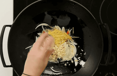 Add minced garlic and ginger. Fry for 1-2 minutes, just to release the aroma.