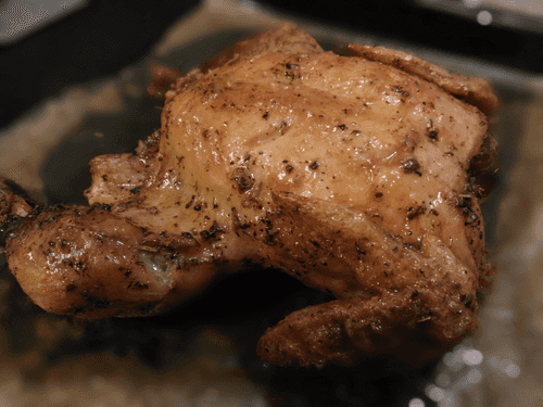 Before baking the chicken, it should be brushed with oil for a great crust.