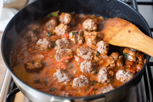 Shape 16 meatballs and fry in 1 tablespoon of olive oil until golden brown.