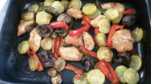 Place the vegetables and meat without sauce in a greased dish and bake in the oven for 30 minutes at 180–200 degrees.