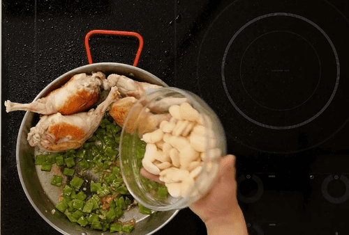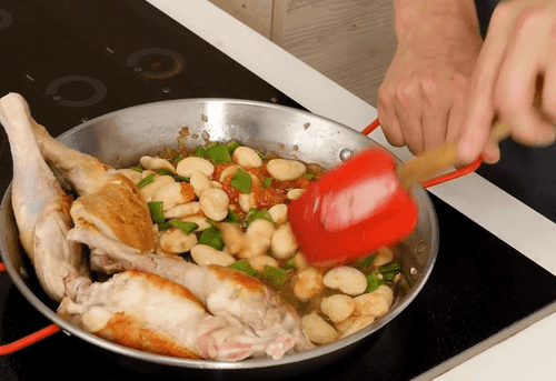 Variety is what makes paella paella. This dish can contain different types of meat, seafood and vegetables, and thanks to this, paella always turns out elegant. At the same time, it is not that difficult to prepare. Our recipe is a paella version with rabbit, chicken, different beans and canned tomatoes. Don't worry if the rice burns slightly to the bottom of the pan - it sounds incredible, but that's how it's supposed to be.