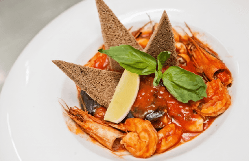 Seafood sauté in tomato sauce is a true embodiment of Mediterranean cuisine, filled with rich aromas and harmonious flavors. The roots of this dish trace back to Spanish coastal cities where fresh seafood combines with a rich tomato sauce infused with wine notes and aromatic herbs. The combination of grilling and slow cooking gives the dish depth: the sweetness of tomatoes, the slight acidity of wine, the spiciness of garlic and oregano create a magical gastronomic symbiosis. Olives add a light saltiness while basil brings freshness and aroma. This dish pairs perfectly with crusty bread, pasta or rice, enhancing them with its rich texture.