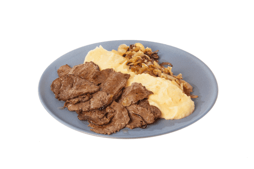Mashed potatoes with meat and fried onions