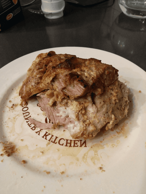 Coat the pork with sauce. Make cuts in it and insert garlic cloves.