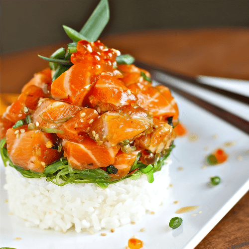 Poke with salmon and lemon kimchi