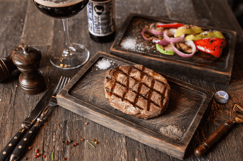 A medium-cooked Ribeye steak is the embodiment of meat perfection, symbolizing the balance between juiciness and rich flavor. This classic British recipe is rooted in centuries-old steak traditions. The medium doneness reveals the meat's texture while preserving its natural tenderness and juices. A light crust formed during cooking complements the meaty aroma, creating a rich flavor profile. Sea salt and fragrant pepper enhance the natural taste of beef, while olive oil adds softness. A sprig of thyme or rosemary adds a touch of freshness and sophistication when served. This steak is the perfect choice for dinner with a glass of red wine, accompanying the meal with notes of deep gastronomic pleasure.