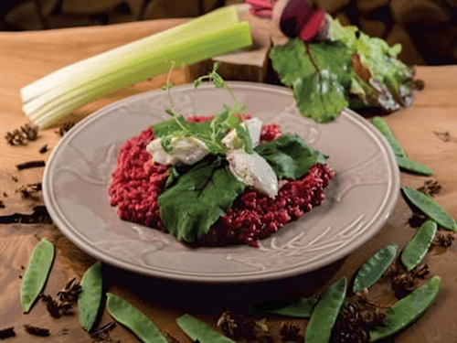 Beet and pomegranate perlotto is an exquisite dish of Italian cuisine that combines the earthy sweetness of beets with the rich tartness of pomegranate juice. Its roots lie in the tradition of risotto preparation, but instead of rice, barley is used, giving it a delicate texture and deep flavor. Made with white wine, fresh thyme, and caramelized shallots, the perlotto acquires a complex aroma enhanced by squid sautéed in a mixture of butter and sunflower oil with garlic. Goat cheese completes the composition, adding creaminess and a refined tang to the dish. This dish impresses with its vibrant color and sophisticated balance of flavors, creating a harmonious blend of seafood, grains, and fruits. It is perfect for those seeking gastronomic discoveries and appreciating original flavor combinations.