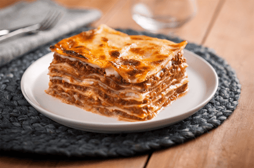 Place the soaked sheets of dough on a baking tray greased with vegetable oil. Spread a little béchamel sauce on top. Layer the meat filling over the béchamel, followed by mushrooms and onions. Cover with a sheet of dough and alternate layers until the desired height is reached. The last layer should be béchamel.
