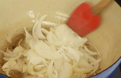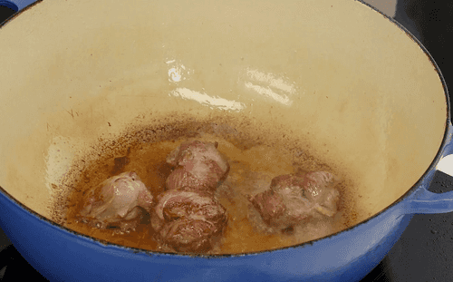 Then pour in the wine and evaporate it for a couple of minutes, after which return the meat.