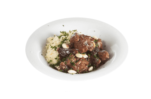A traditional Arabic dish that features a very unusual and delicious combination of sweet dried fruits, spicy spices and red meat. Serve with couscous, mashed potatoes or rice.