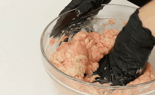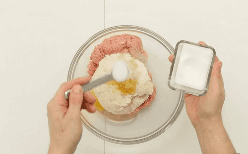 Mix the minced meat with soaked breadcrumbs, onion, and egg.