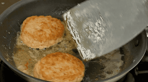 Fry the patties on both sides until golden brown, about 2-3 minutes per side.