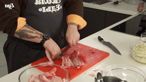 Cut the duck into large pieces of roughly the same size. Do not remove the bones; they should also impart their aroma to the filling. Start with the back part, separating the legs into drumstick and thigh. Do not discard the tail; it is needed as it contains a lot of fat that will serve well. Then move to the front part: cut off the breast and divide it in half. Cut off the wings. Everything can be done quite roughly; there is no need to strictly follow poultry cutting rules; the main thing is that the pieces are of equal size. Do not throw away fat and skin; everything should be used. That is, all parts of the duck should end up inside the zur-belysh.
