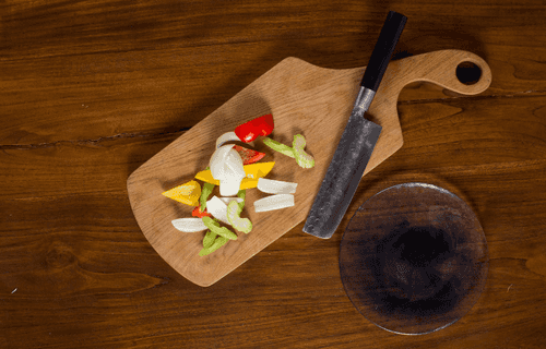 Cut the vegetables into roughly equal segments and the garlic into slices.