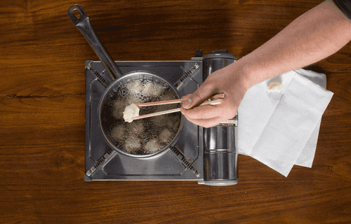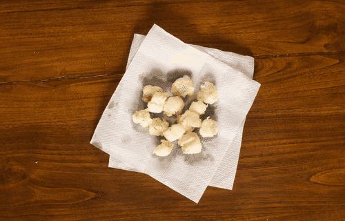 Heat a sufficient amount of vegetable oil in a deep skillet or wok to fully cover the pieces while frying. Add enough pieces so they can fry freely without sticking to each other. Fry for 2-3 minutes and place on paper towels to absorb excess oil.