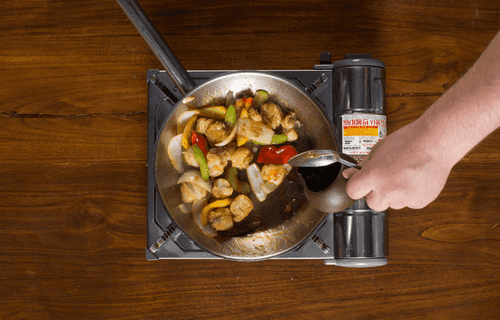 Add fish and oyster sauce to the vegetables, gently mix and fry everything together for 30 seconds. Remove from heat and serve immediately.