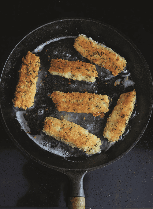 The recipe is taken from the book "The Cult of Homemade Food". "I grew up on white fish such as cod, but pollock is no less wonderful, and my recipe for fish sticks makes excellent fish sticks from it. In this case, I use paneer breadcrumbs - more airy, creating a less heavy crust on the products after frying, which, however, remains crispy longer. The combination of breadcrumbs and dill gives the fish sticks an amazing aroma and a beautiful appearance.