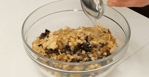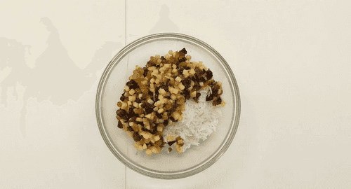 Mix the prepared dried fruits, almonds, and rice.