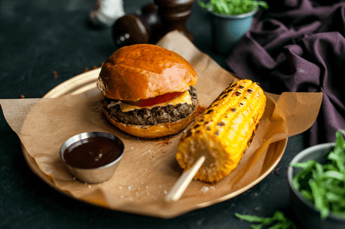 A burger with pink tomatoes is a harmonious blend of classic American fast food and tender, juicy fruits. Pink tomatoes, known for their sweet taste and meaty texture, add a special freshness and softness to the dish. The combination of crispy brioche bun, juicy beef patty, tangy cheddar, and pickles creates a rich and balanced flavor that captivates from the first bite. This burger is perfect for summer evenings when you crave something hearty yet light and refreshing. Inspired by American grilling traditions, it brings joy to anyone who appreciates good food and the richness of natural flavors.
