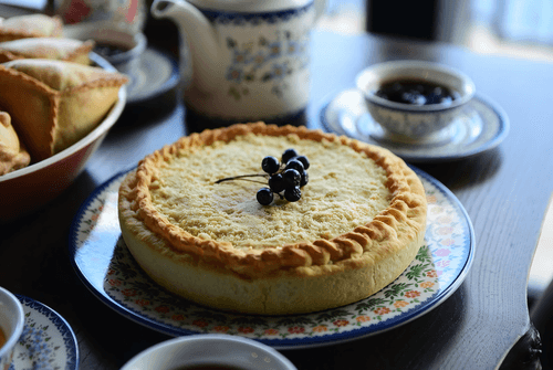 Make a hole in the middle of the pie, shape a lid from the remaining dough and place it in the hole.